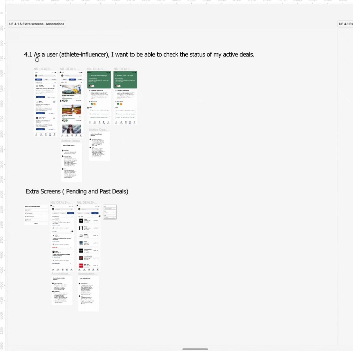 Developed user flows and screens for brand deals, facilitating athlete engagement with sponsorship opportunities.