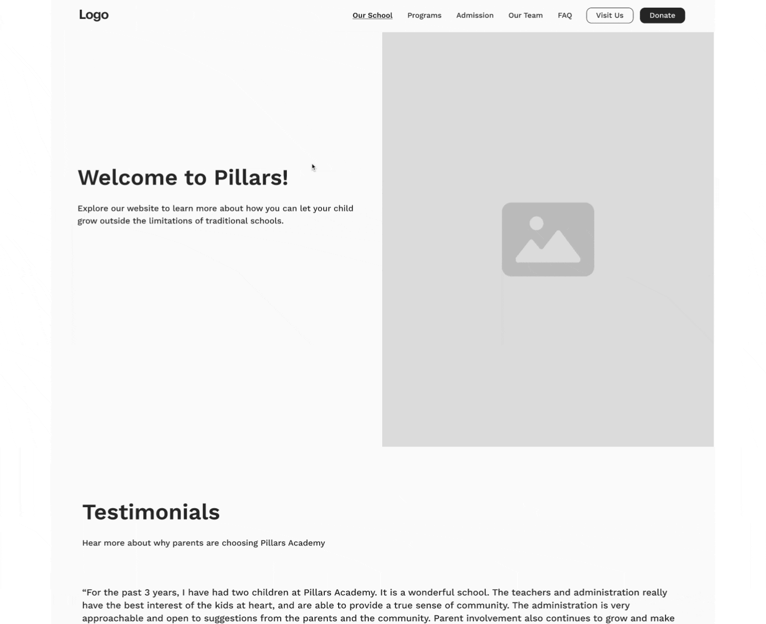 Pillars' aim was to have an inclusive and user-friendly website that would effectively enhance school engagement and enrollment. However, the prior website's limited functionality and design hindered its ability to attract and effectively engage prospective parents.